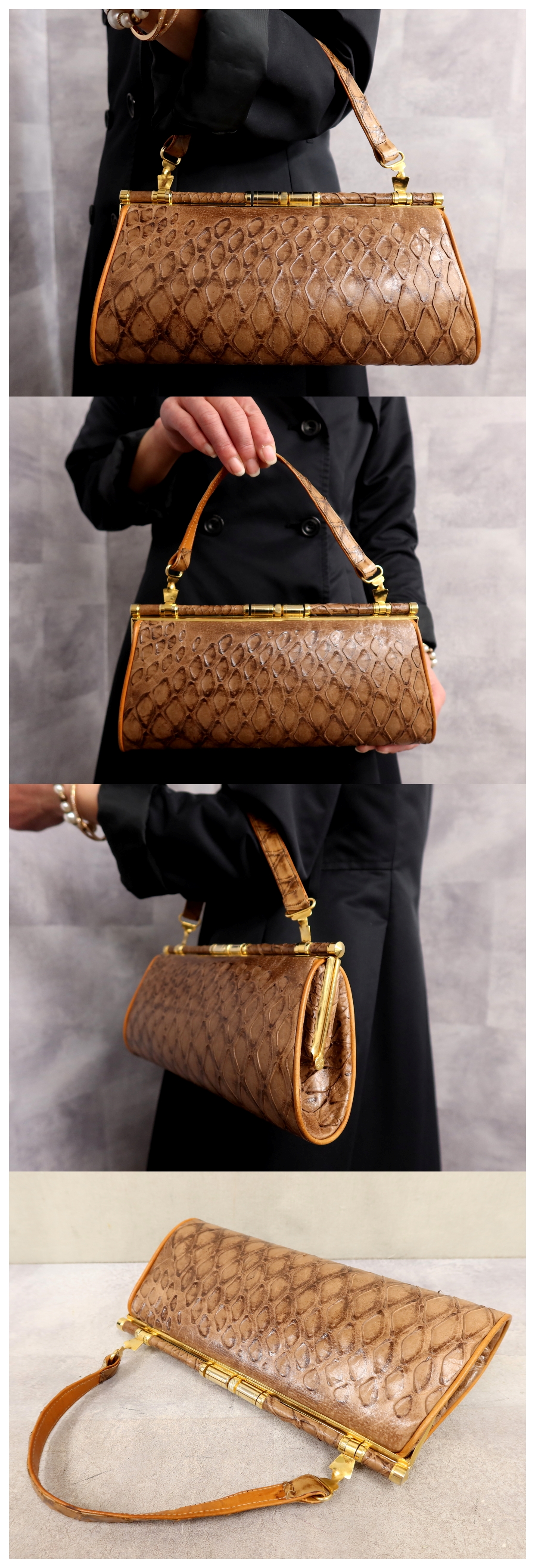 Store ●超美品●GENUINE●希少 センザンコウ 穿山甲 パンゴリン 本 革●がま口 ハンド バッグ●ブラウン系●ゴールド金具●腕掛け●Js64235