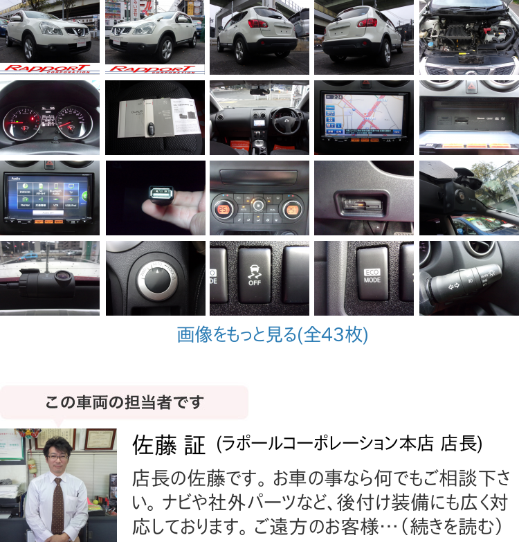 Store 【諸費用コミ】返金保証付:デュアリス 2.0 20G FOUR 4WD ガラスルーフ 1オーナー 禁煙車 ナビ 地デジ BT ドラレコ前後