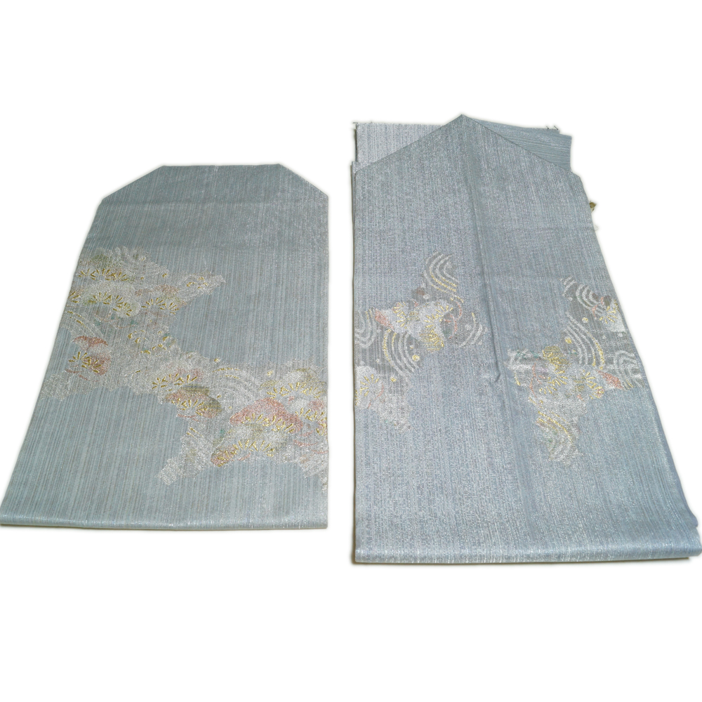 Store 二部式 袋帯 着物リメイク・リフォーム用 素材用 雲取に松、波頭模様 袋帯 帯 フォーマル 作り帯 付け帯 つけ帯 帯 中古 リサイクル着物