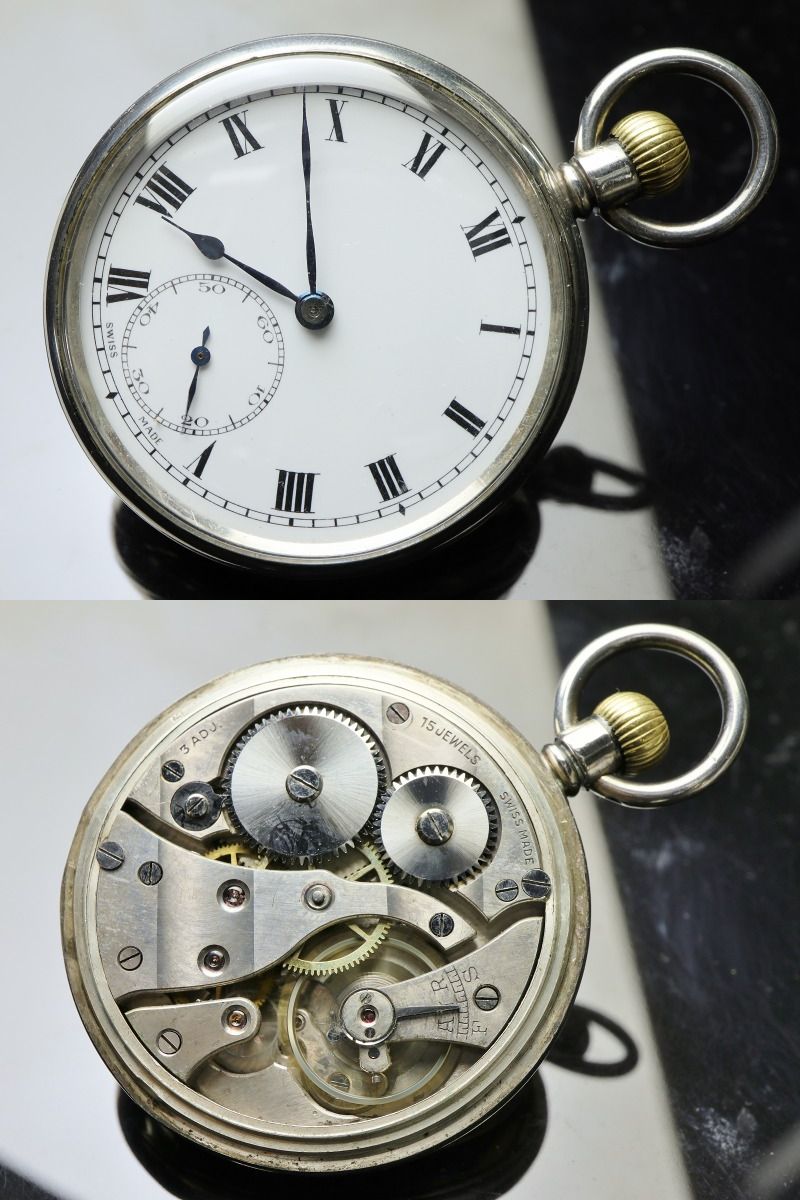 材質はSterlingSilver(純度92.5%以上の銀無垢)、裏蓋の開閉はスナップバック式のオープンフェイスケースです。