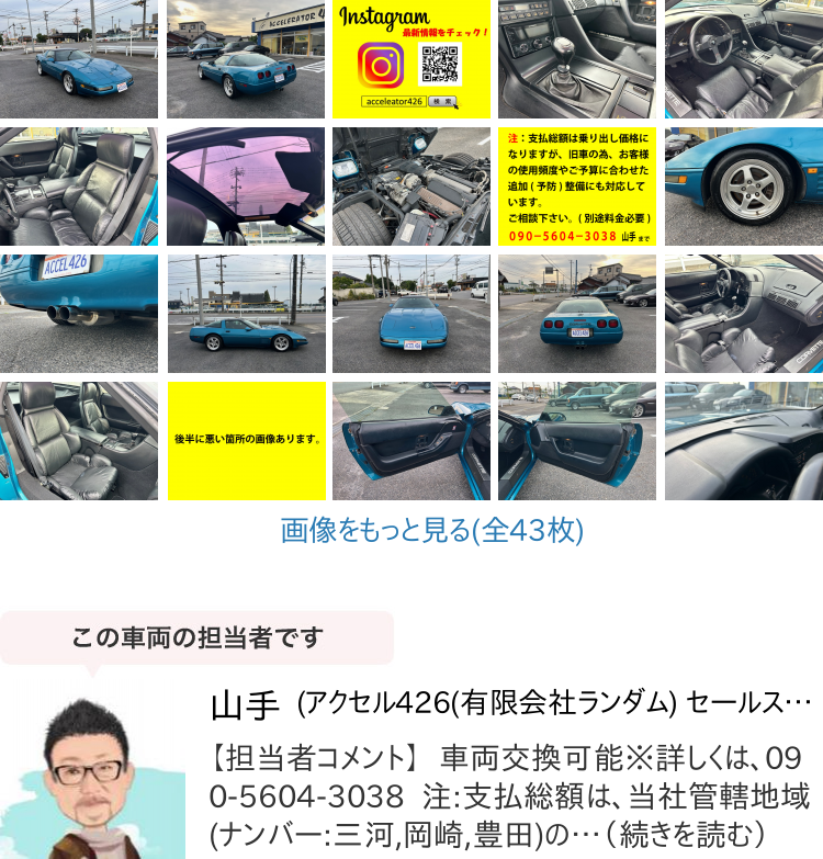 Product name: 【諸費用コミ】返金保証付&鑑定書付:コルベット 5.7 6速マニュアル・LT1・同色全塗装済