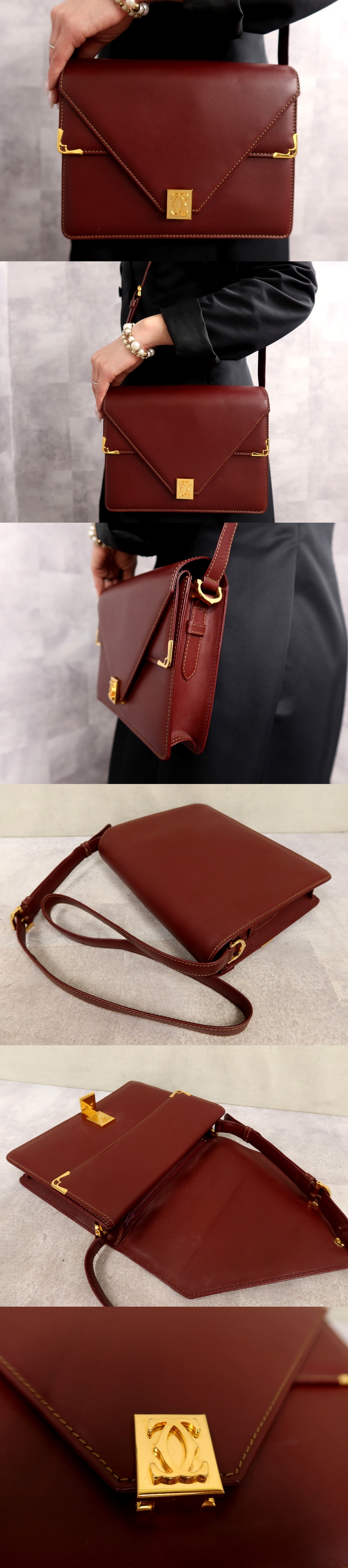 Store ●超美品●Cartier カルティエ●マスト●ダブルフラップ●カーフ レザー 本革●ショルダー バッグ●ボルドー●ゴールド金具●Js65974