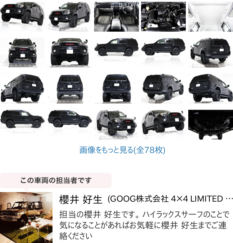 ランクル・サーフ・ハイエースをはじめクロカン・SUVを中心に100台以上の在庫がございます。