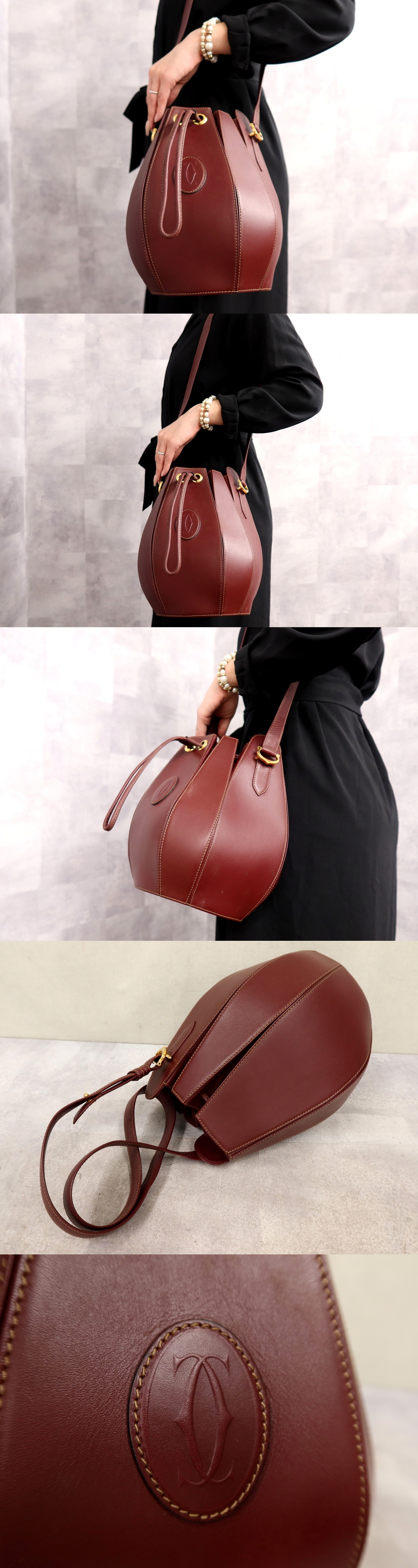 Product name: ●超美品●Cartier カルティエ●マスト●ロゴ型押し●カーフ レザー 本革●巾着 ショルダー バッグ●ボルドー●ゴールド金具●Js66643