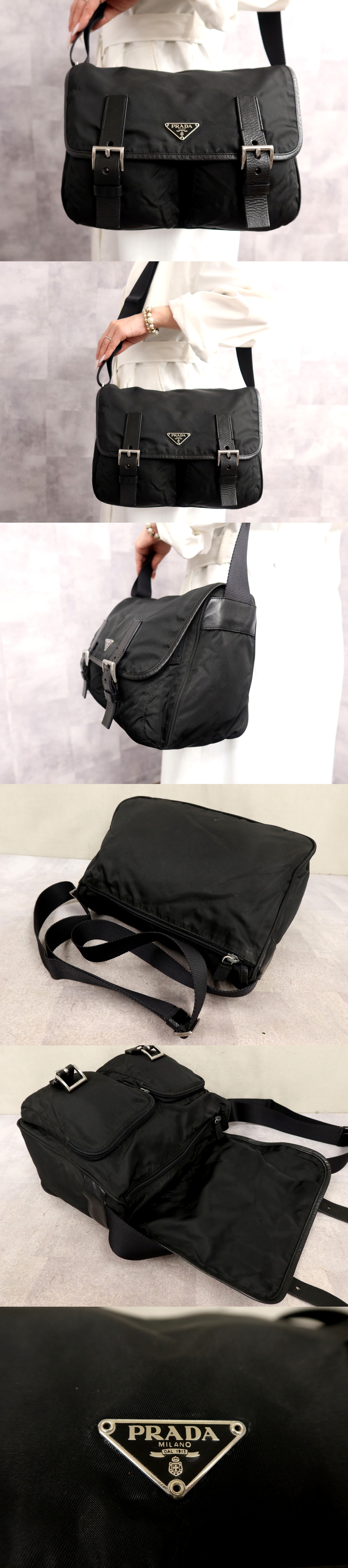 Store ●超美品●PRADA プラダ●三角ロゴプレート●ポコノ ナイロン カーフ レザー 本革●ショルダー バッグ●黒●SV金具●イタリア製●Js66969