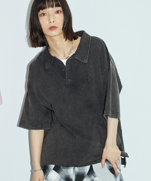 参考商品名:ヴィンテージ加工サークルロゴ刺繍半袖ポロシャツ