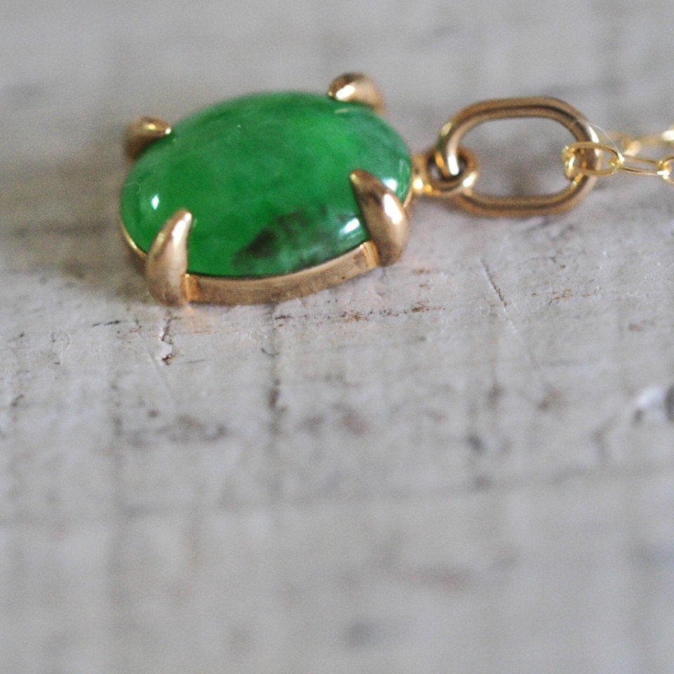 翡翠 K10 ペンダントトップ ネックレス 天然無処理ヒスイ 小粒
