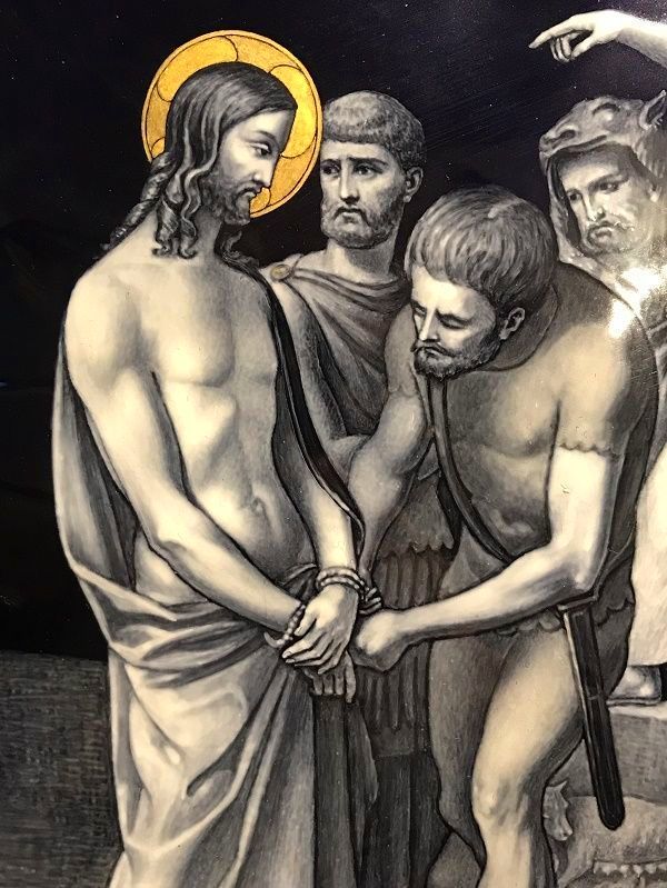 《キリストの受難》 Ernest Blancher作/リモージュ グリザイユ エマイユ 額装 19世紀 フランス アンティーク