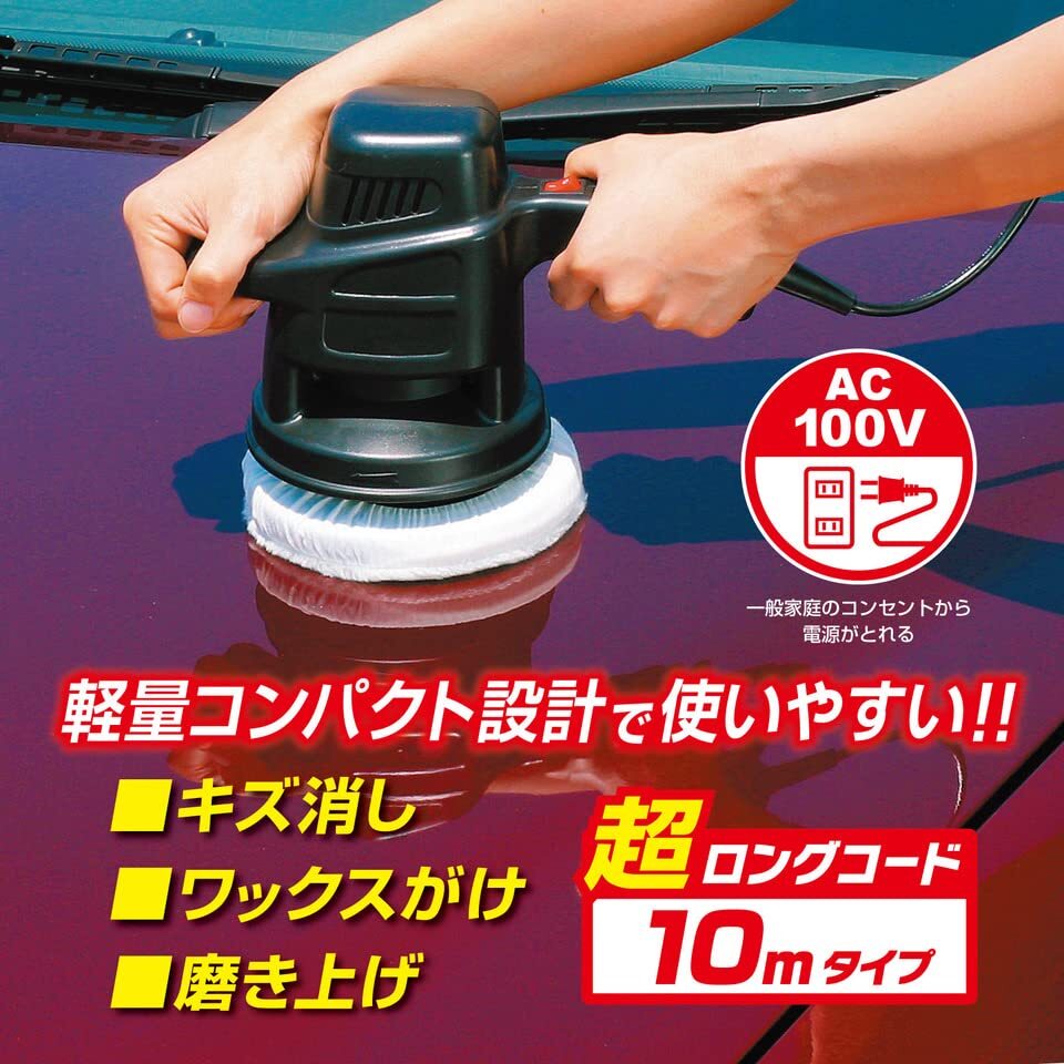 プロスタッフ 洗車用品 電動ポリッシャー シャインポリッシュ 電源コード10m P-59 家庭用電源AC100V対応 最大回転数3