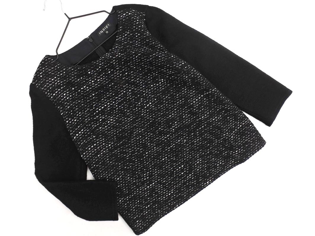 INDIVI インディヴィ ウール混 ツイード 切替 プルオーバー size38/黒 ◇■ ☆ eka1 レディース