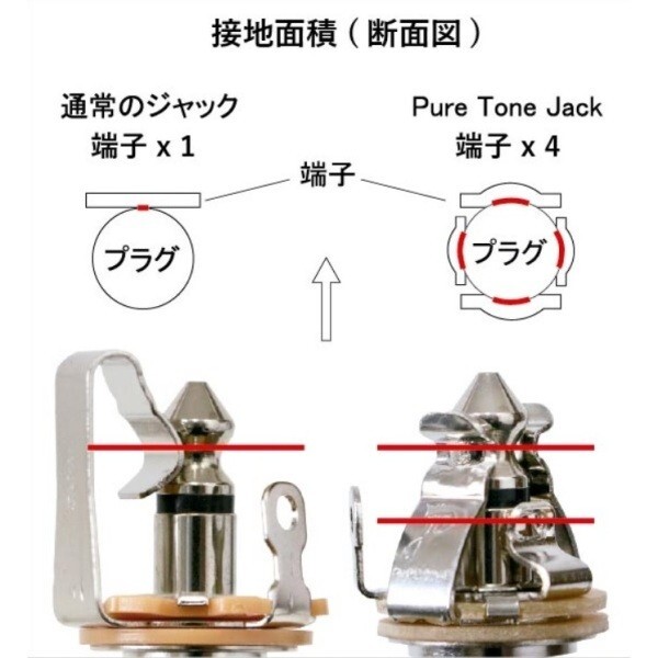 Pure Tone Jack (ピュアトーンジャック)はそのジャック側に注目し、既存のフォンジャックが抱える問題に改良を加えた新しいジャックです。