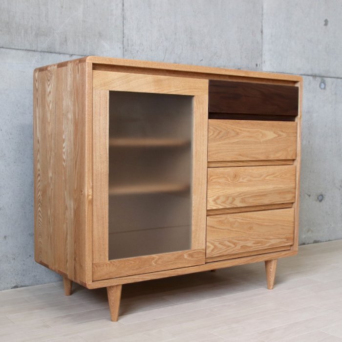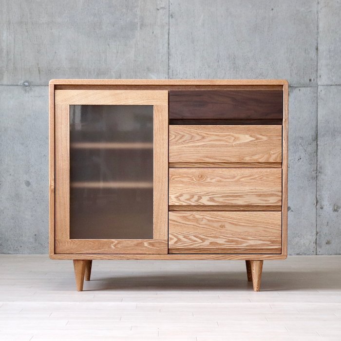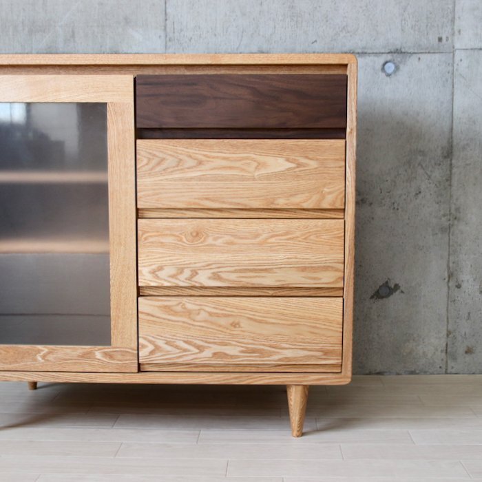 Product name: サイドボード 北欧 リビングボード キャビネット ナチュラル 木製 脚 おしゃれ ウォールナット ガラス扉 収納 完成品 引出し 匠デザイン