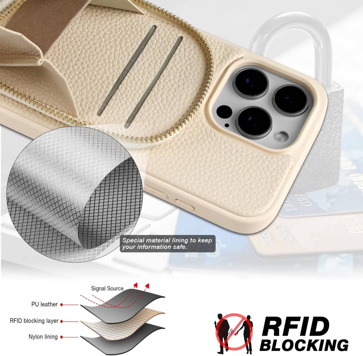 Hanman MagSafe Wallet Case for iPhone 16 Pro Max RFIDブロッキング PUレザー ジッパー財布 ホワイト