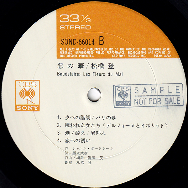 見本LP☆ 松橋登 悪の華 六文銭(SOND-66014)NOBORU MATSUHASHI Les Fleurs du Mal CHARLES BAUDELAIRE シャルル・ボードレール【金森肇】