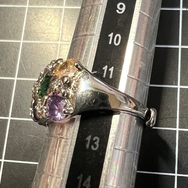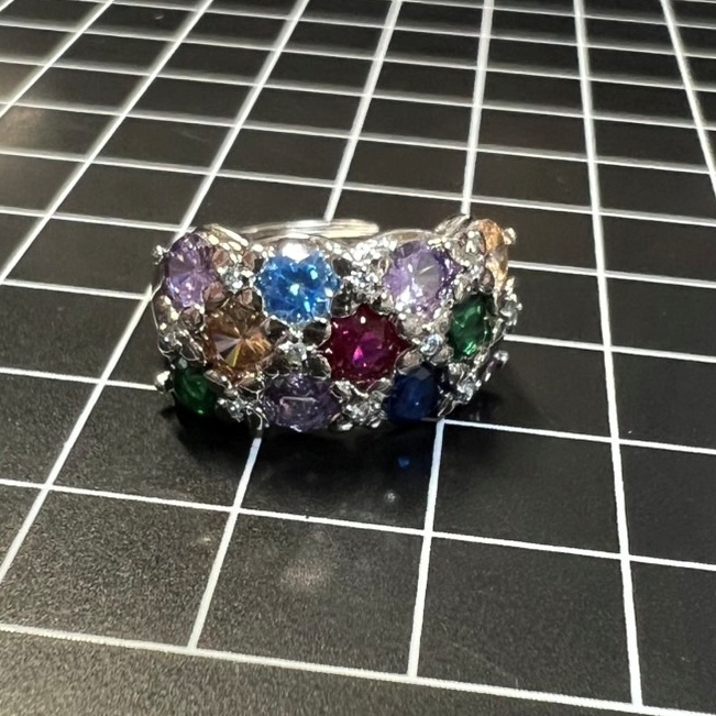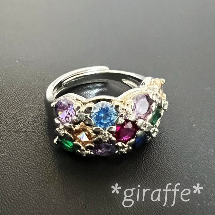 色とりどりのジルコニアが可愛らしいデザインの指輪です。
