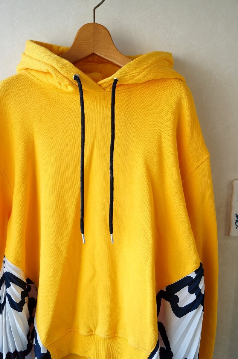 ★MSGM (エムエスジーエム) *異素材切替♪ サイドプリーツパーカー オレンジイエローS イタリア製* 古着のgplus広島 2412t3