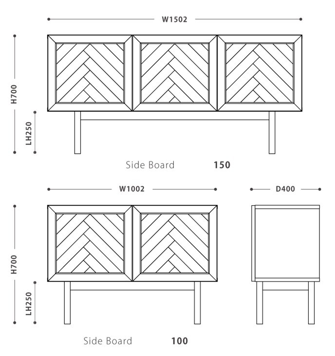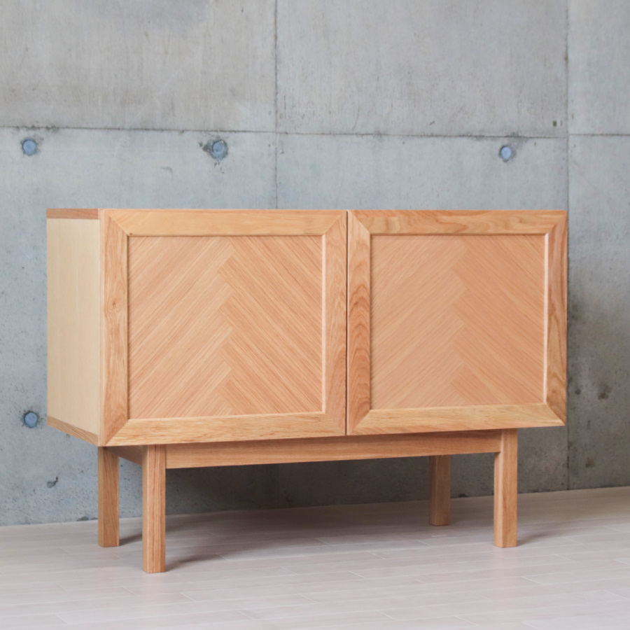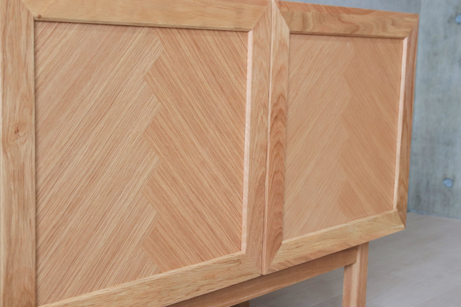ヘリンボーン柄が特徴のサイドボード。