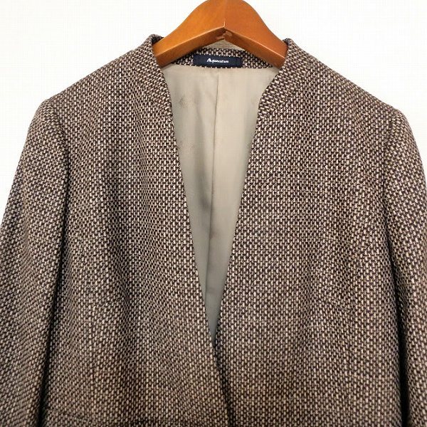Product name: #wnc アクアスキュータム Aquascutum スカートスーツ 10 茶系 ツイード ノーカラー サイドファスナー カシミヤ混 レディース [924597]