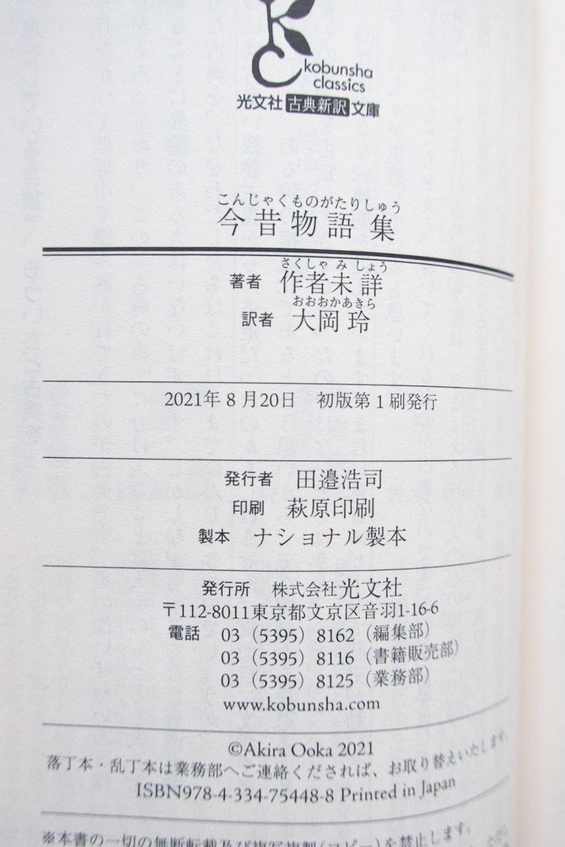 Product name: 今昔物語集 (光文社古典新訳文庫) 作者未詳、大岡玲訳 2021年初版