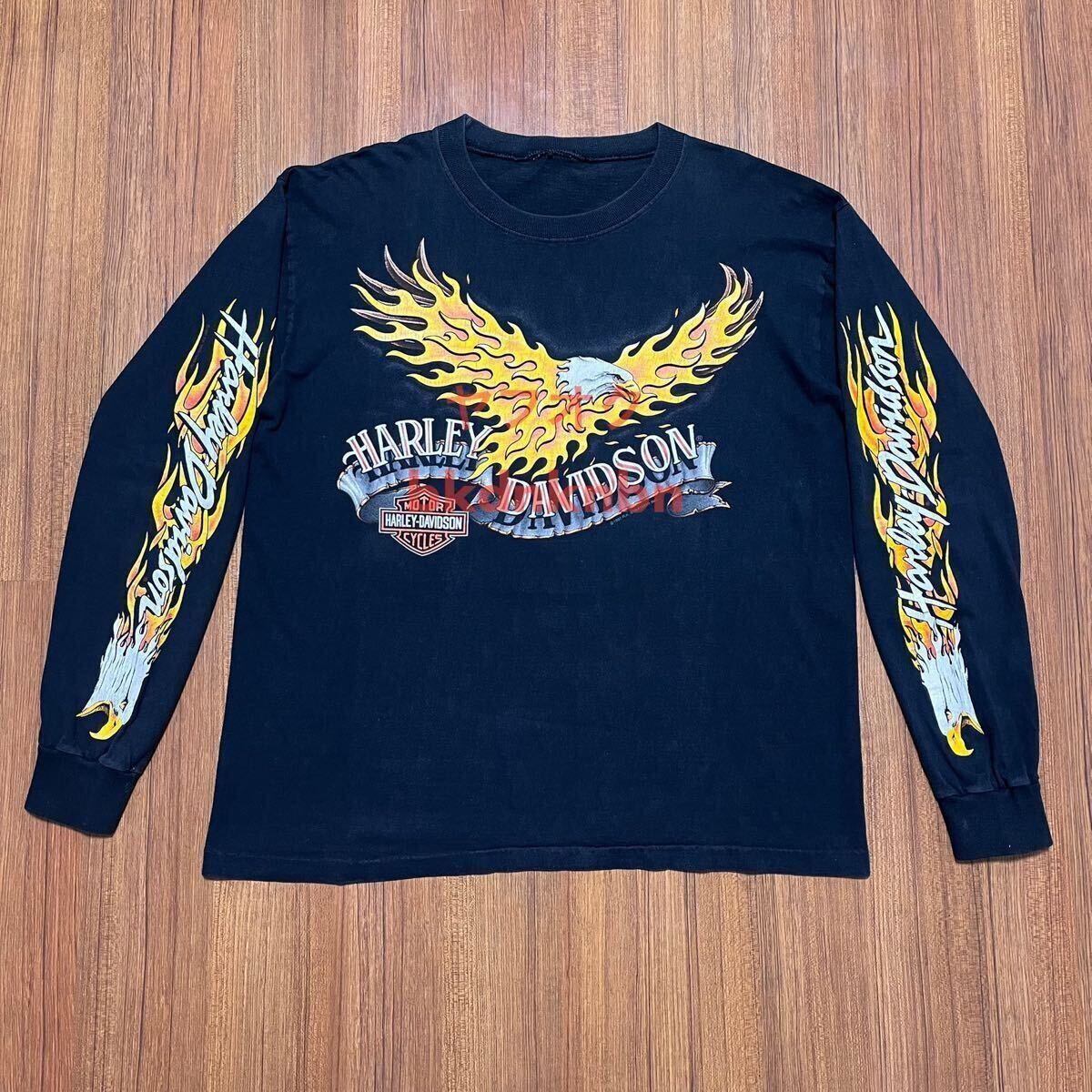 Product name: イーグル フレイム 【90's HARLEY-DAVIDSON L/S TEE】 ハーレーダビッドソン ロンt 長袖 両面ロゴ 袖プリント ファイヤー サンダー tシャツ