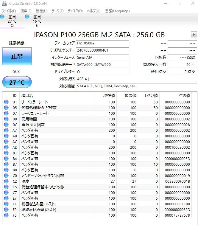 • 光学ドライブ:DVDスーパーマルチドライブ(読込のみ確認)