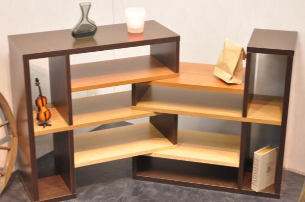 カラーはダークブラウンカラー&ナチュラルカラーを使用したカラフルなデザインのオープンラック です。