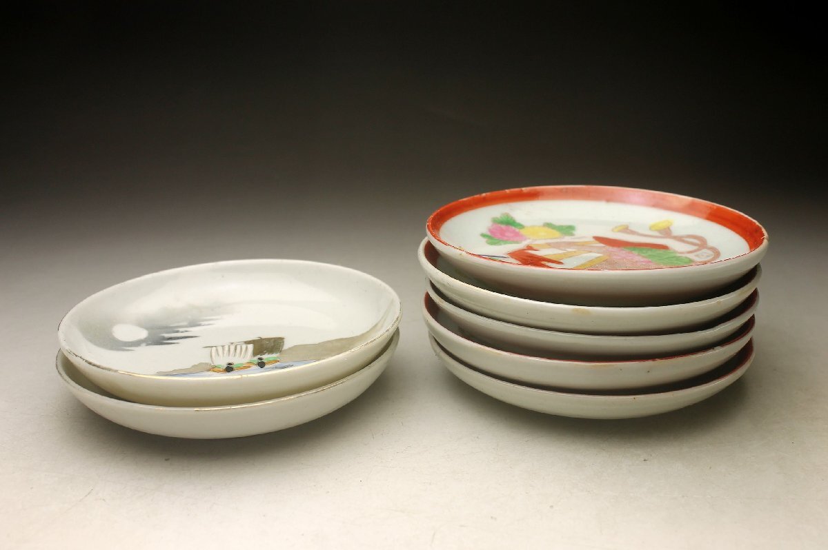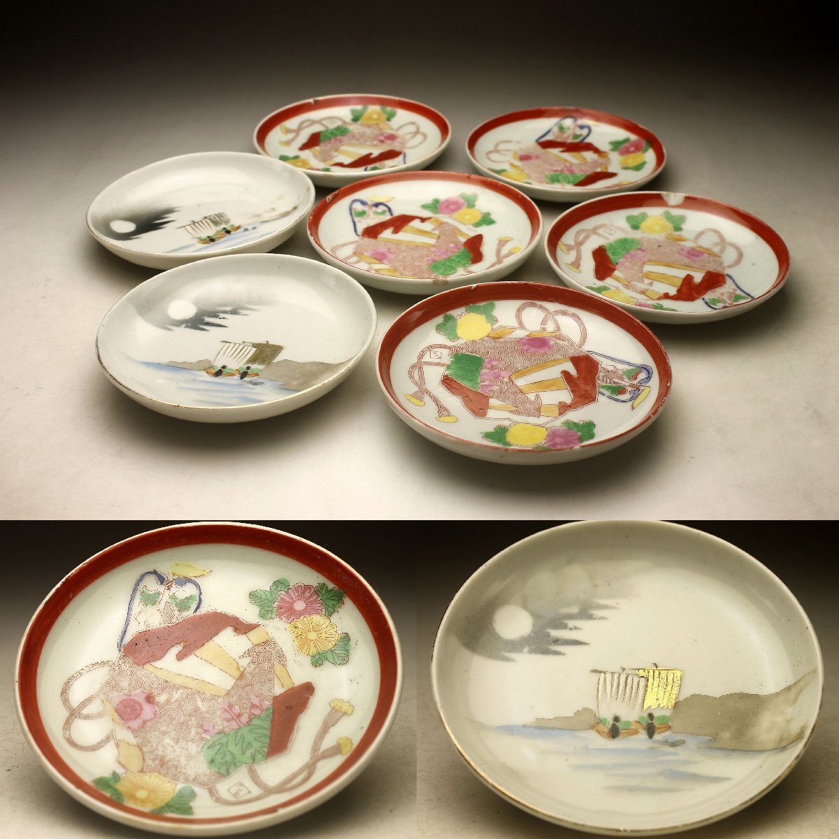 Product name: 【余韻】 伊万里 色絵 江戸小紋 手塩皿 7枚セット(2種)★時代物<同梱可>
