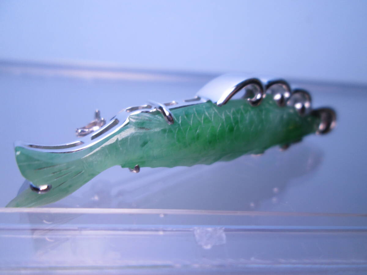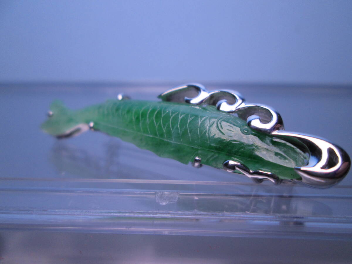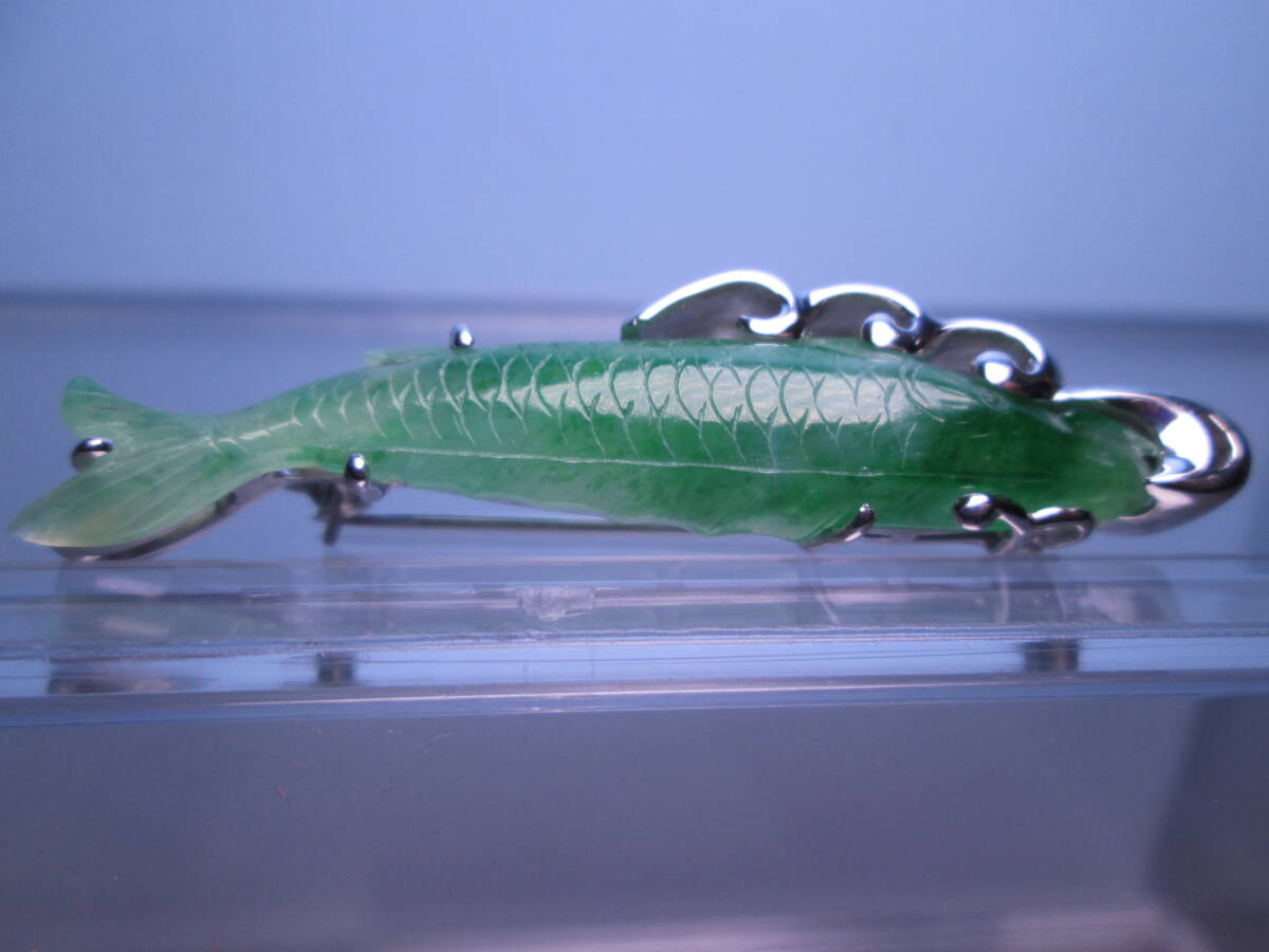 Product name: 【江月】アンティーク・Pm850 本翡翠 鯉彫刻のブローチ 11,62g