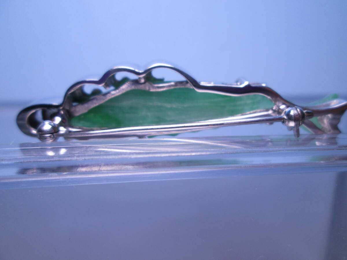 【江月】アンティーク・Pm850 本翡翠 鯉彫刻のブローチ 11,62g