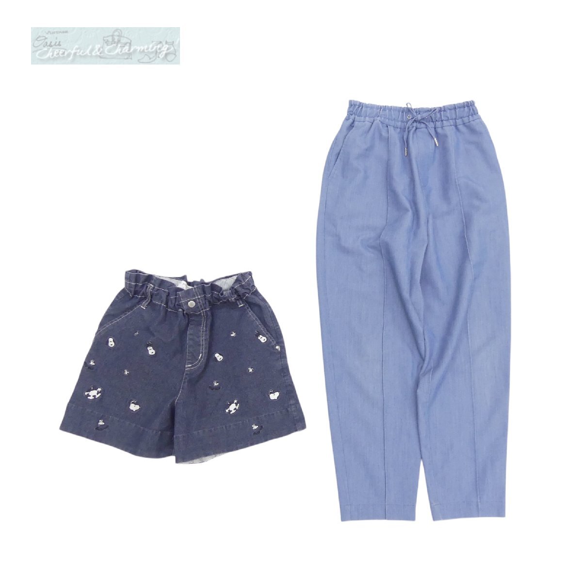 送料込 POM PONETTE junior ガールズ子供服2点 ①イージーテーパードパンツ S(140) ②PEANUTSコラボ刺繍ショートパンツ M (150) スヌーピー
