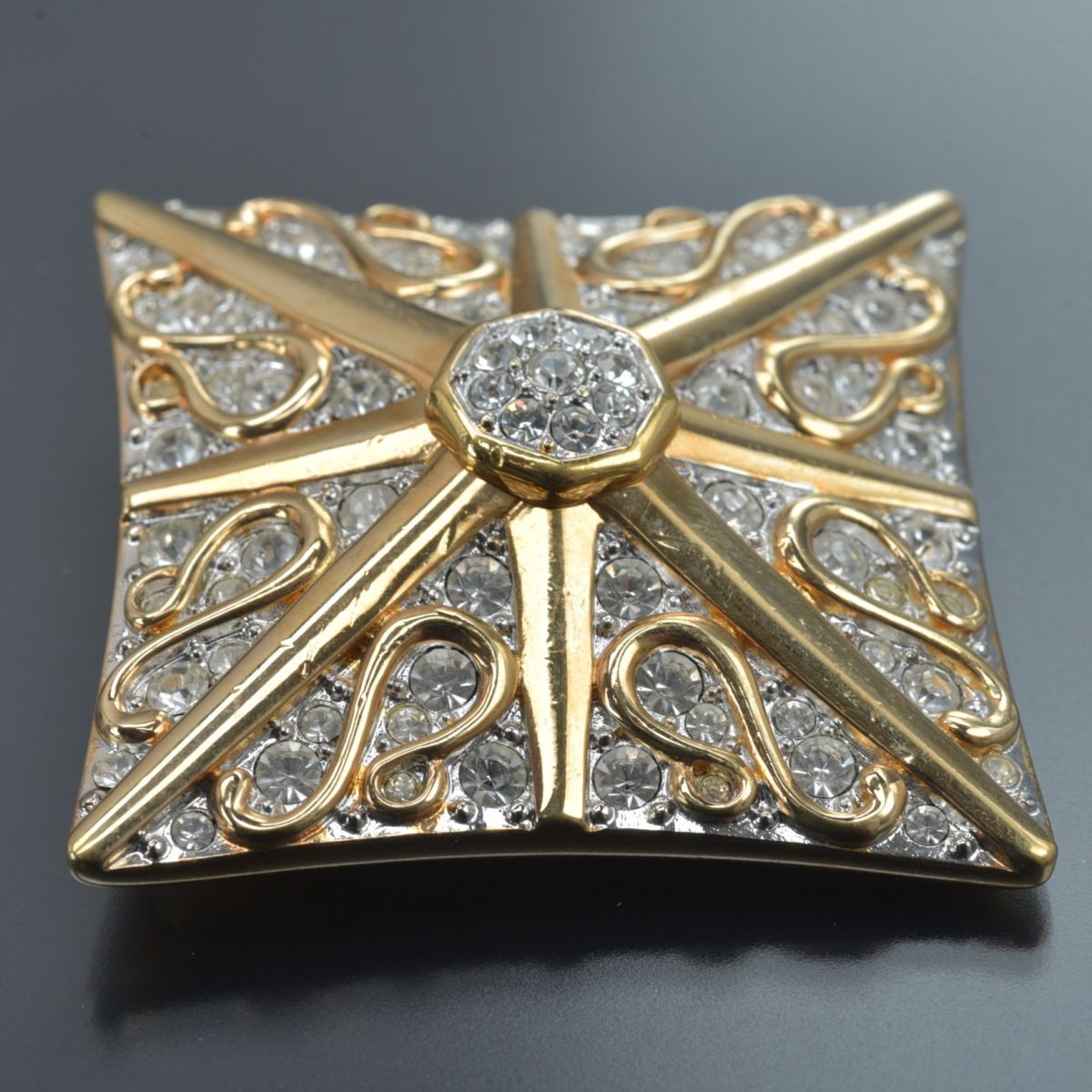美品 スワロフスキー SWAROVSKI ブローチ スクエア 重量43.7g ゴールド