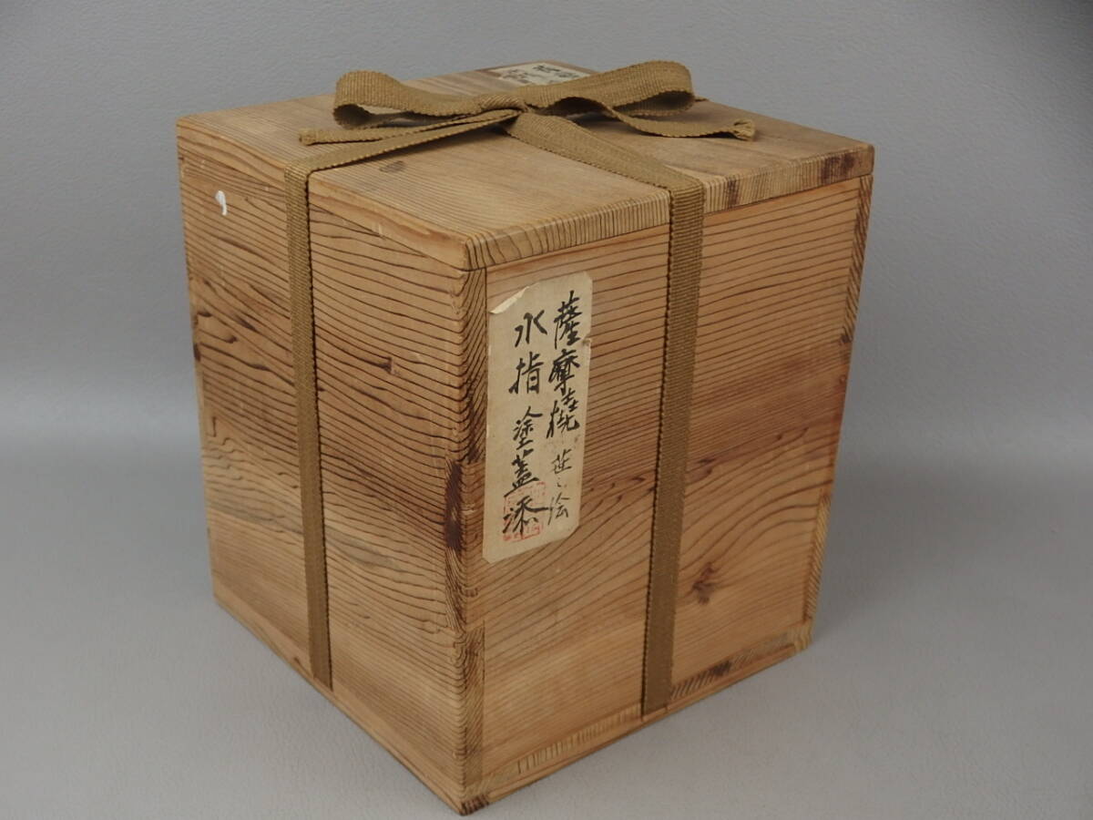 【骨董・茶道具】★薩摩焼 書付有★★笹之絵水指 塗蓋添 gh016wb