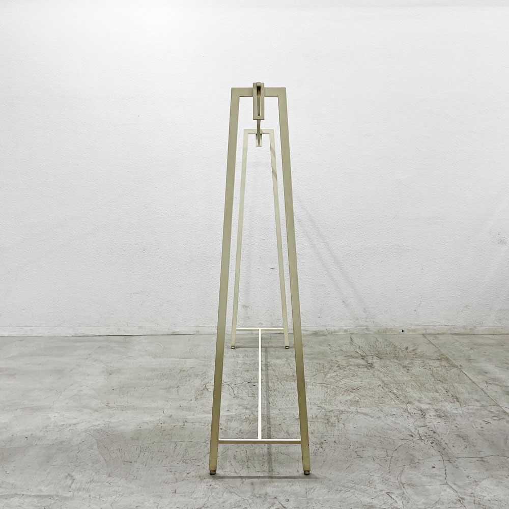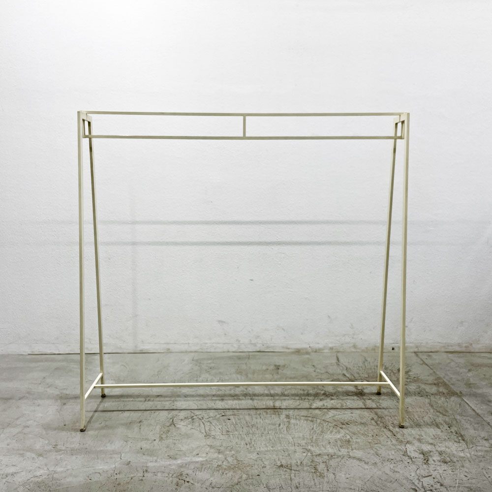 直線的なアイアンフレームを用いたシンプルなアイテム。全体にはアイボリーカラーのペイントが施されており、使い込むごとに金属本来の色合いが表れるインダストリアルな表情が魅力的です。