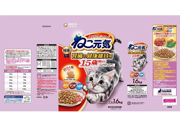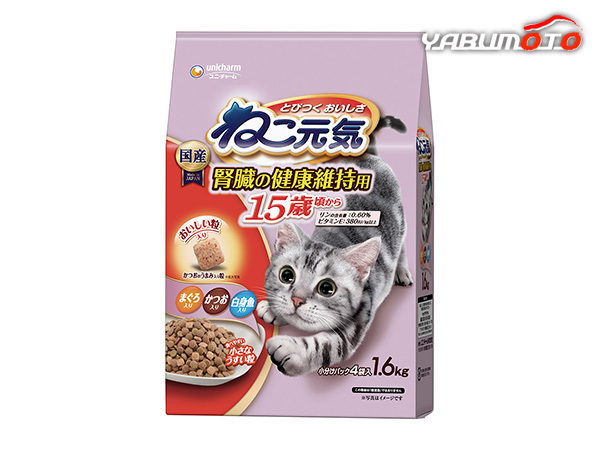 Product name: ねこ元気 腎臓の健康維持用 15歳頃から まぐろ かつお 白身魚入り 1.6kg とびつく おいしさ