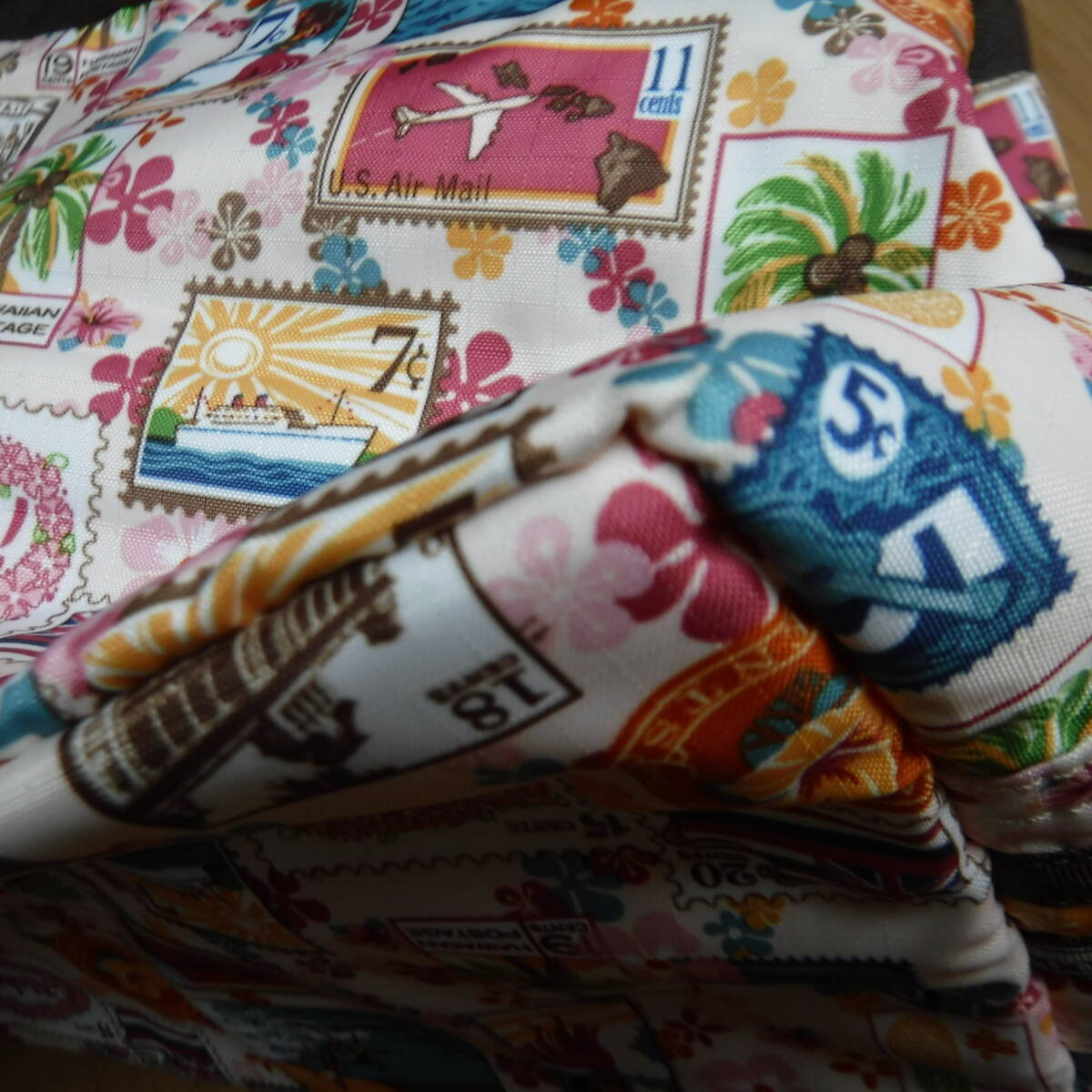 レスポートサックのハワイ限定レイアロハ柄のトートバッグで、形はモリー、サイズは個人寸法で横35縦23マチ19持ち手46センチ位、トップは両側から半周以上開くチャック式で出し入れしやすく、その両サイドにスナップ式大きめポケット1つ、更にその中に小さめ1つ、チャック式大きめポケット1つありとても使いやすいと思います♪レイアロハ柄はライトピンクベースにフラガールやALOHA,ハワイ州旗やヤシの木、ハイビスカスなどがオールドポステージ風にデザインされた人気の柄ですが、今では製造販売していないはずですので、この状態での入手は困難かと思います。あまり使用感なく綺麗な状態ですが、ポケットの中の小さなポケット(外からは見えません)に多少汚れがあります。長期個人保管につき、多少の汚れや擦れ、金具のくすみや傷、シワなどある場合がありますので、ノークレームノーリターンでお願いします!