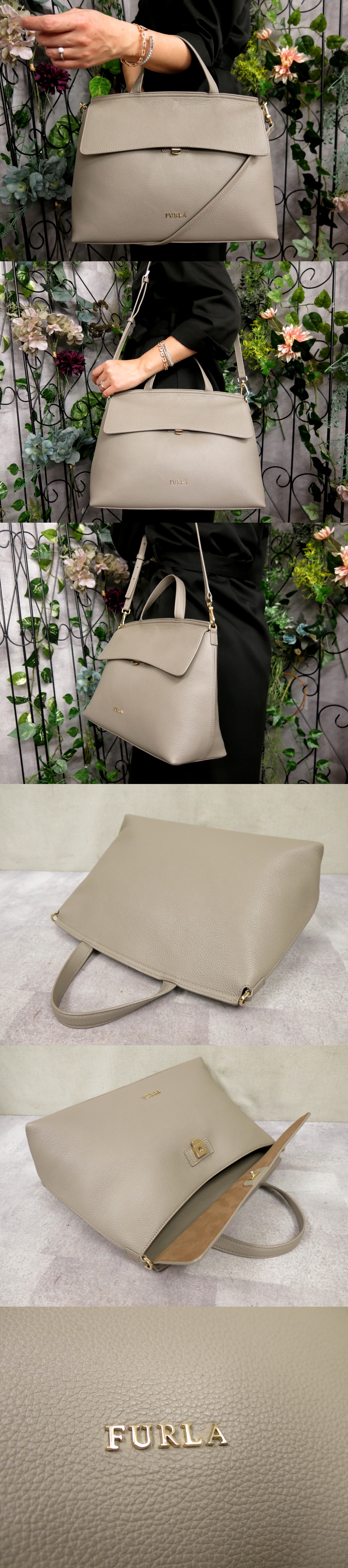 Product name: ●超美品●新品同様●FURLA フルラ●NIKI ニキ●ロゴ金具●カーフ レザー 本革●2way ハンド バッグ●グレージュ●G金具●B5 収納●Js56641