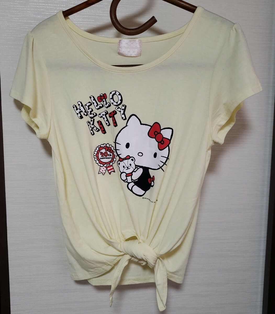 Hello Kitty ハローキティ Ensevelite 半袖 Tシャツ 40周年 裾を結ぶデザイン イエロー Mサイズ