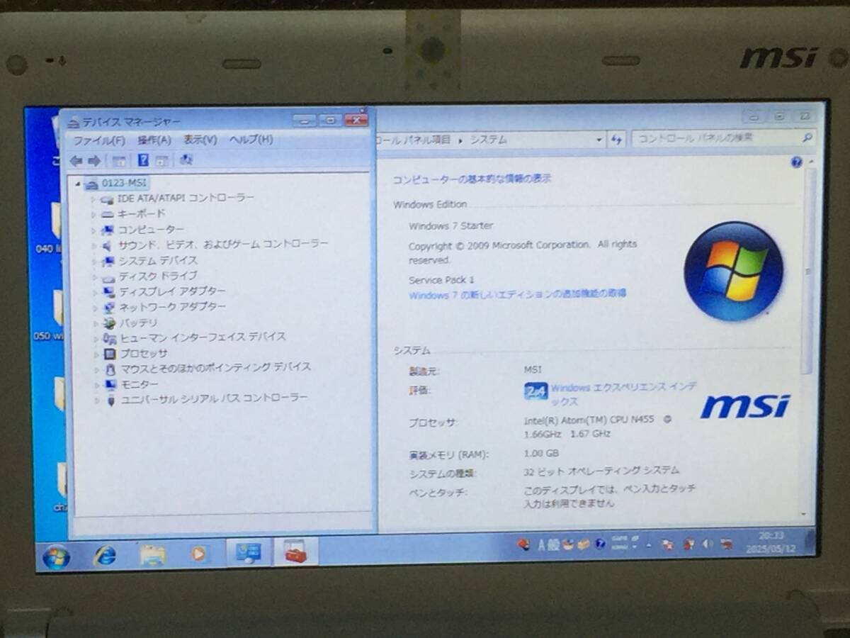 170サイズ詰め放題/未チェックジャンク扱い/msi u135dx win7スターター/オープンオフィス/jw_cad/cpu atom1.66g/メモリ1g/hdd160g/wifi