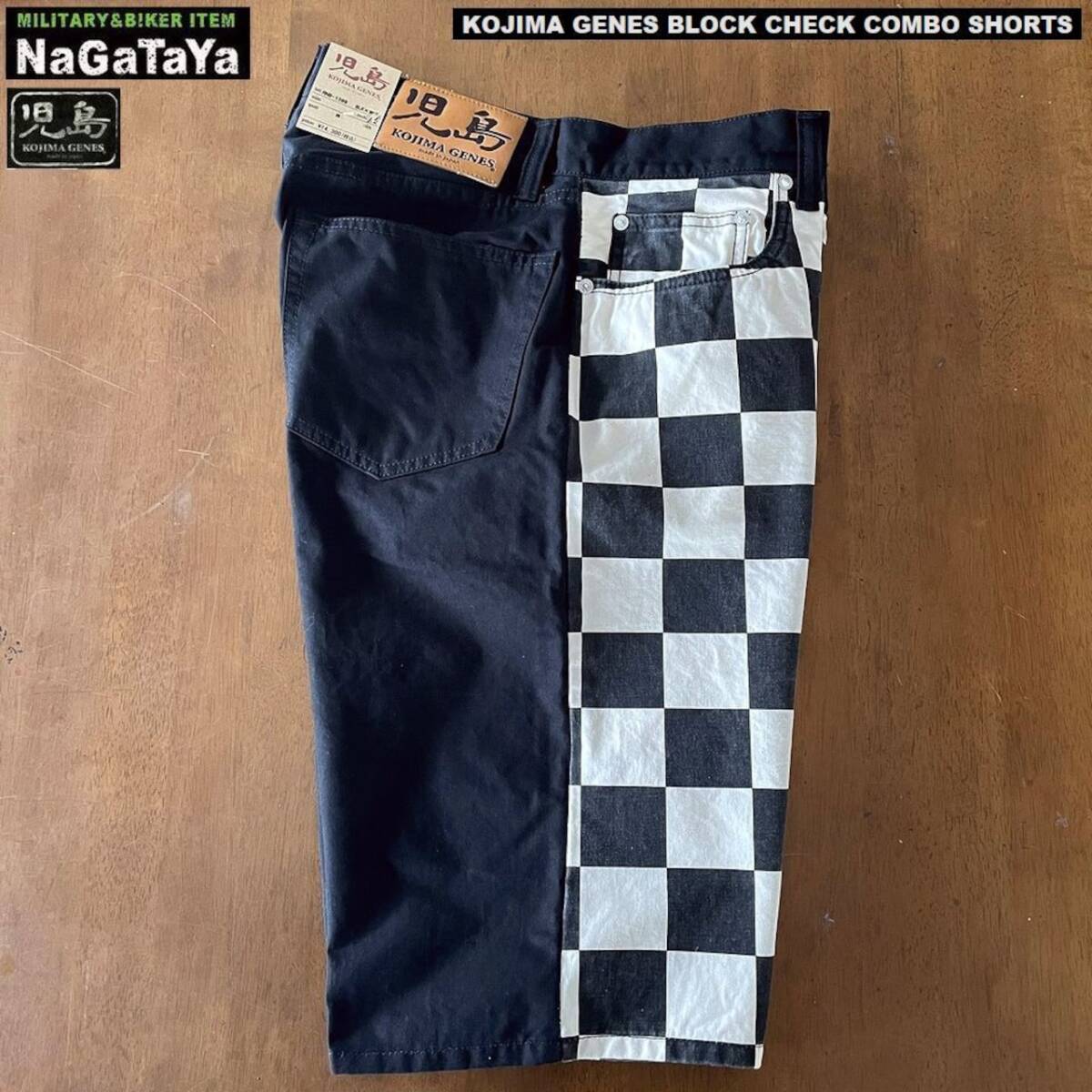 ★ 児島ジーンズ KOJIMA GENES ブロックチェック コンボショーツ オフ白×ブラック RNB1399 日本製 MADE IN JAPAN ★