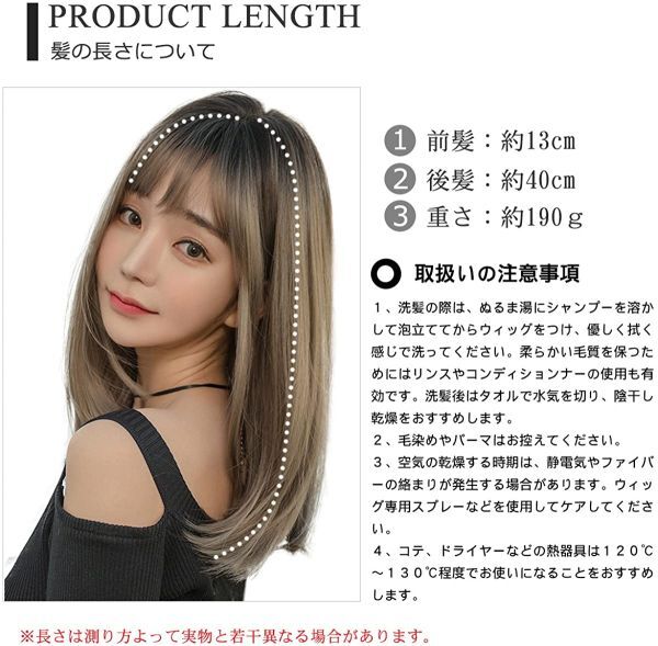 サイズ:45cm 前髪:15cm;頭の直径:15~20センチ - サイズ調整可能(すべてのヘッドサイズに適しています)