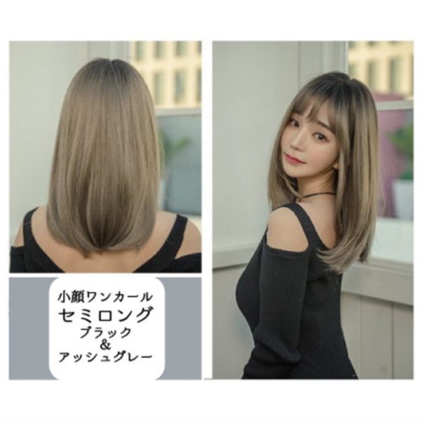 Product name: ウィッグ ミディアム セミロング フルウィッグ 自然 医療用 マロングレー 原宿 渋谷系 グラデーション カール ロリータ 混色