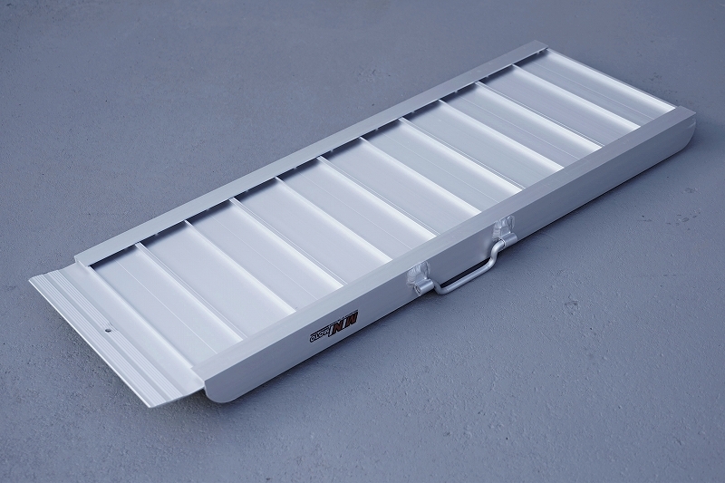 台車・車椅子用スロープの幅を半分のサイズに"サイズダウン"したことで、バイク、一輪車などに必要十分なサイズになり、扱いやすくなりました。