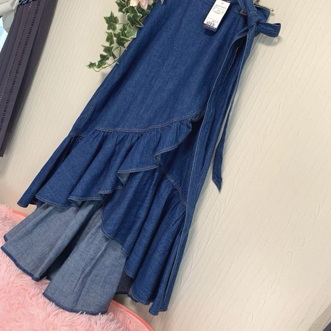 Product name: E16.タグ付き未使用/23ss◆RALPH LAUREN【ラッフルド シャンブレー ラップ スカート】M デニム リボン フリル ロング ポロ ラルフローレン