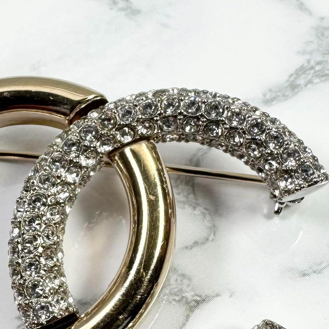 近年 極美品 CANEL シャネル ブローチ ビジュー ラインストーン ココマーク ゴールド シルバー フォーマル 祭事 パーティ 入学式 卒業式