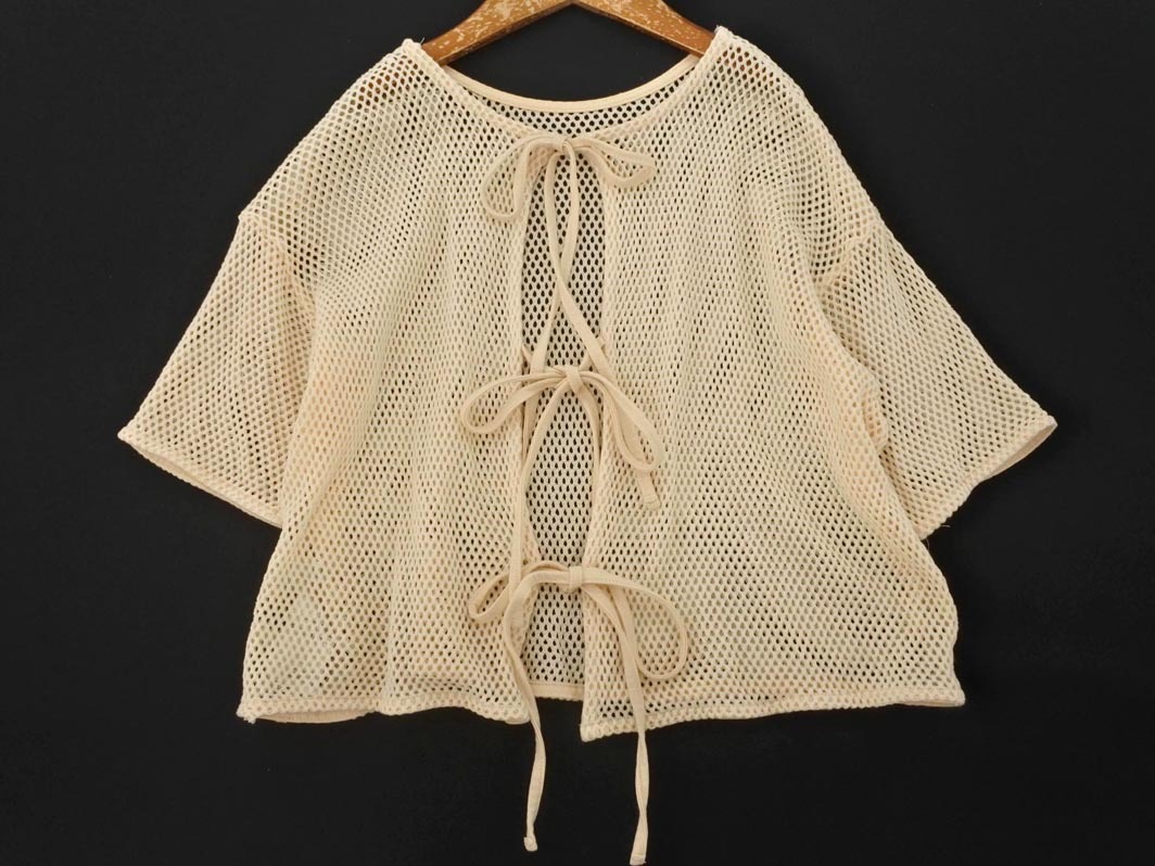 Product name: LOWRYS FARM ローリーズファーム かぎ編み バックリボン ニット セーター sizeF/ベージュ ■◆ ☆ ffb7 レディース