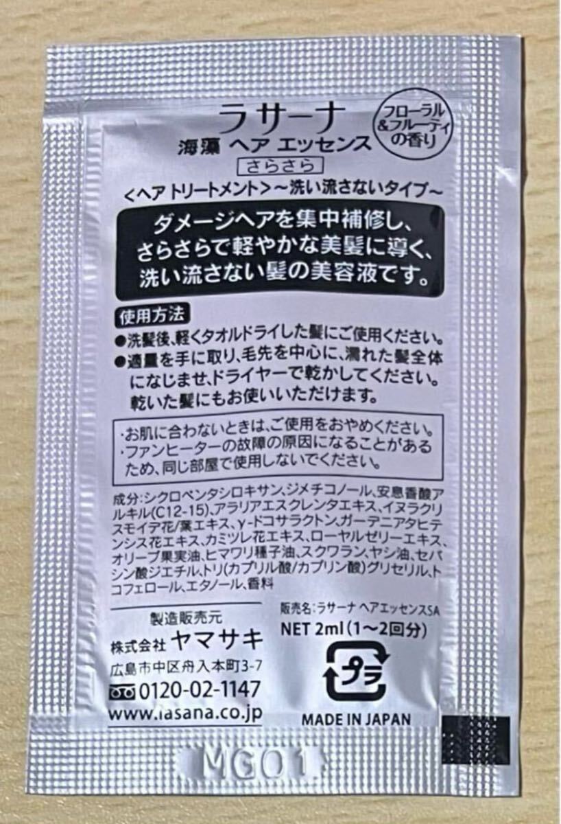 Product name: La Sana ラサーナ 海藻 ヘア エッセンス しっとりタイプ & さらさらタイプ サンプル