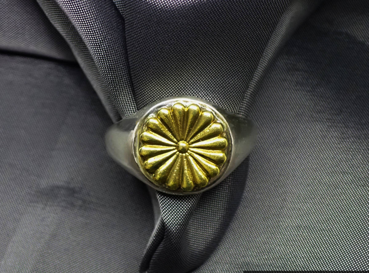 ★菊紋印台銀製指輪silver925 (大菊・タイプ)★菊:真鍮★シルバーリング15-28号★開運・菊紋・菊花紋・菊花・国花・菊の御紋・仁・神社