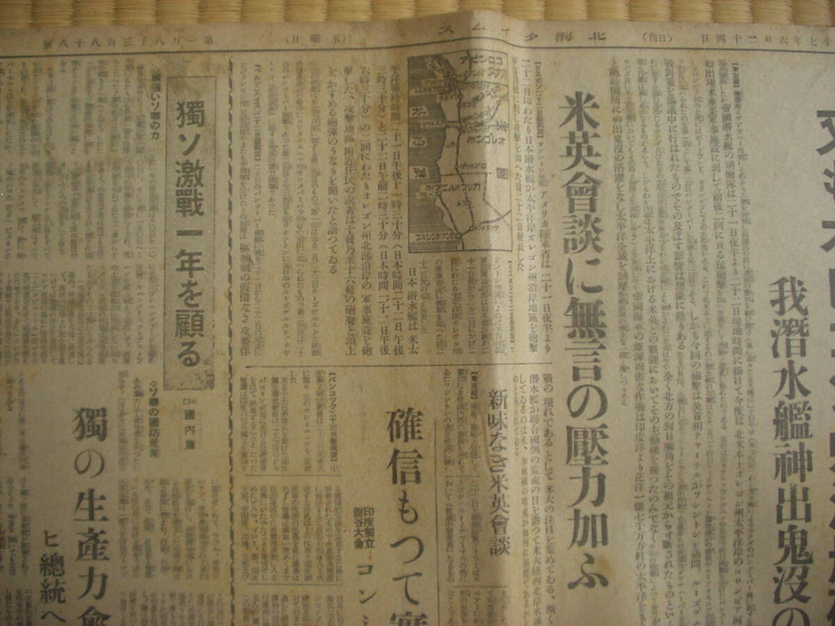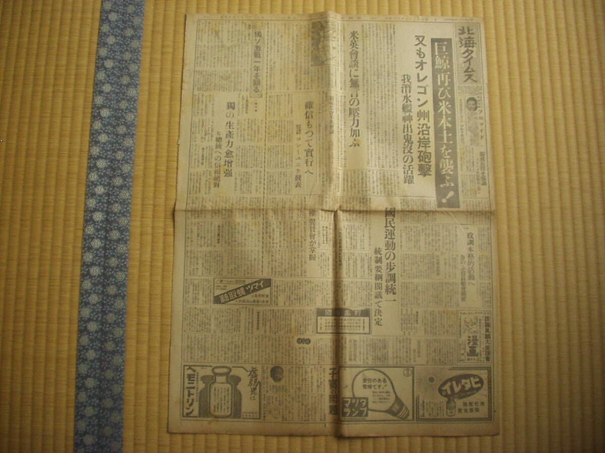 Product name: 北海タイムス 昭和17年6月24日 又もオレゴン州沿岸砲撃 石狩港問題に触れる 無敵陸軍戦闘飛行隊について 日婦札幌市支部 戦時債権当籤番号