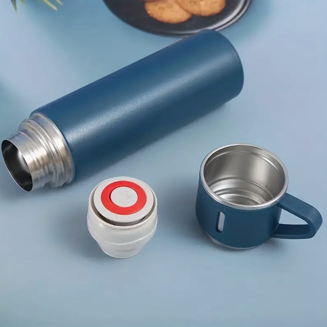 水筒 ステンレス 500ml コップ3つ付き ブラック 真空断熱 保冷 保温 軽量 コンパクト おしゃれ ステンレスボトル かわいい キャンプ t1007