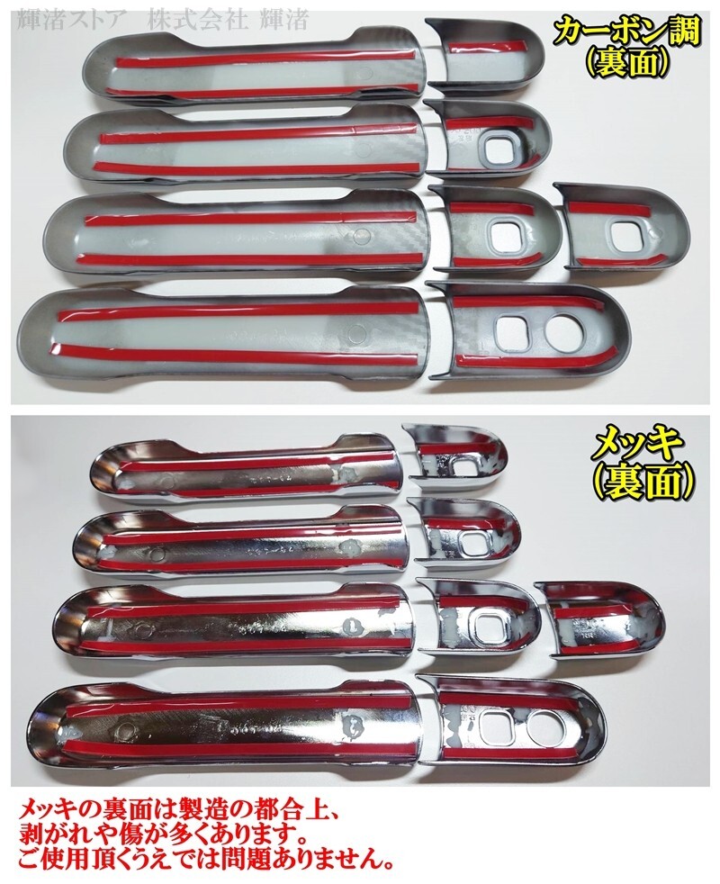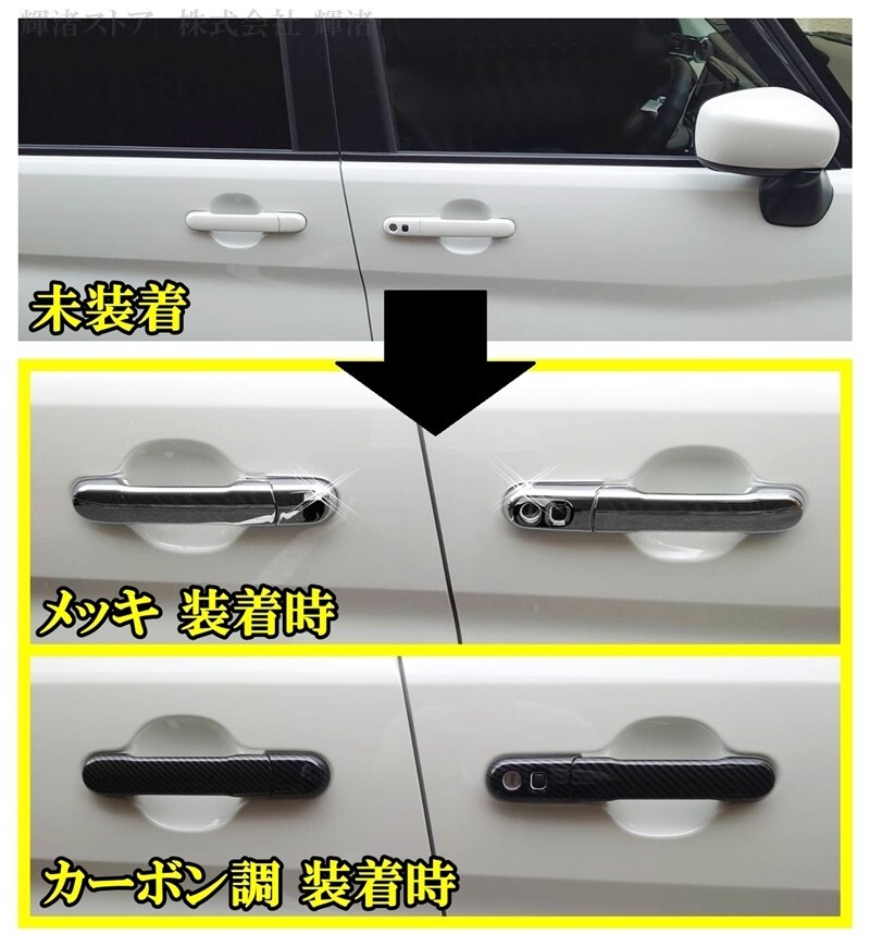 メッキ カーボン調 ドアノブ ドアハンドル カバー ハーフ トリム プロテクター アクセサリー ガーニッシュ カスタム ドレスアップ ハード 外装 モール サイド